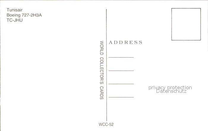 Flugzeuge Zivil Tunisair Boeing 727-2H3A TC-JHU postalisch nicht gelaufen Erhaltung siehe scans