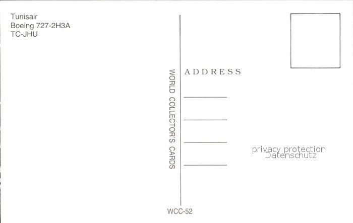 Flugzeuge Zivil Tunisair Boeing 727-2H3A TC-JHU postalisch nicht gelaufen Erhaltung siehe scans