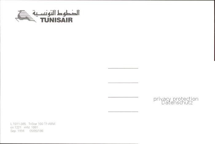 Flugzeuge Zivil Tunisair L-1011-385 TriStar 100 TF-ABM cn1221 postalisch nicht gelaufen Erhaltung siehe scans