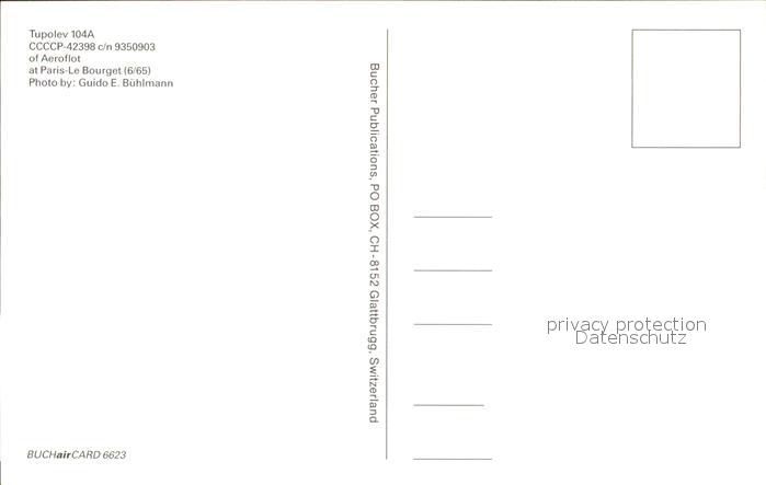 Flugzeuge Zivil Tupolev 104A CCCP-42398 c/n 9350903 Aeroflot postalisch nicht gelaufen Erhaltung siehe scans