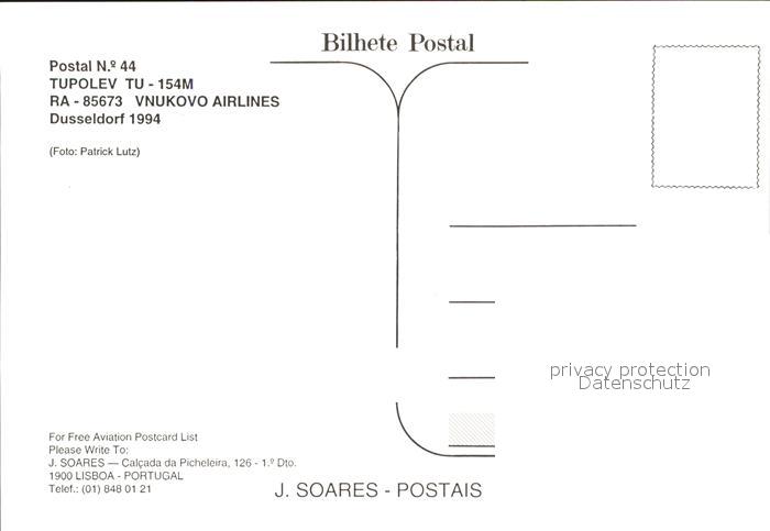 Flugzeuge Zivil Tupolev TU-154M RA-85673 Vnukovo Airlines postalisch nicht gelaufen Erhaltung siehe scans