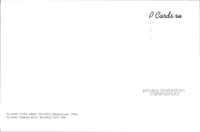 Flugzeuge Zivil Tupolev Tu-154M SAKHA AVIA RA-85812 SVO Moskau postalisch nicht gelaufen Erhaltung siehe scans
