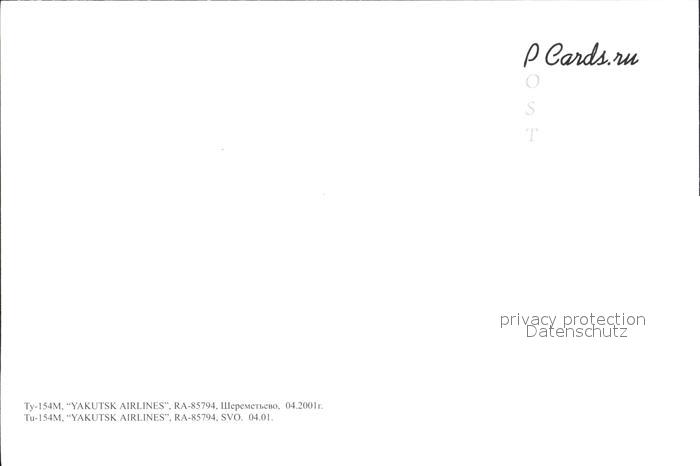 Flugzeuge Zivil Tupolev TU-154M YAKUTSK AIRLINES SVO Moskau postalisch nicht gelaufen Erhaltung siehe scans