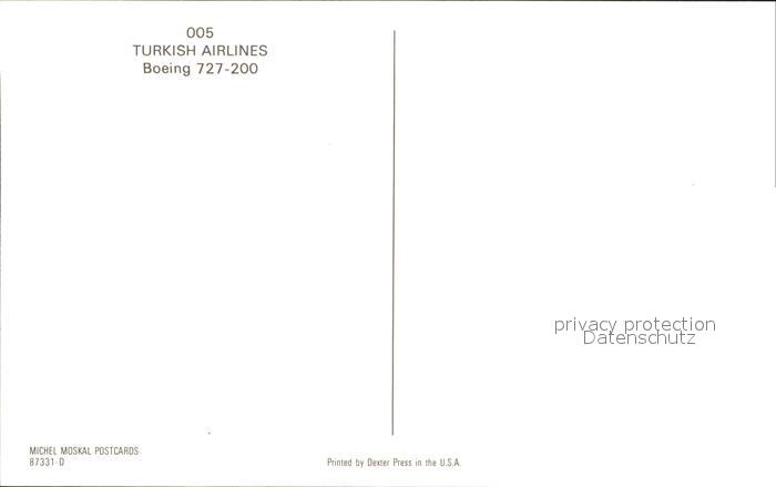 Flugzeuge Zivil Turkish Airlines Boeing 727-200 postalisch nicht gelaufen Erhaltung siehe scans