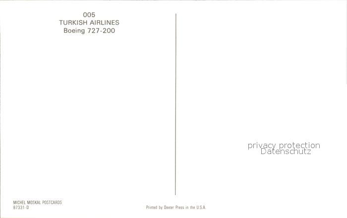 Flugzeuge Zivil Turkish Airlines Boeing 727-200 postalisch nicht gelaufen Erhaltung siehe scans