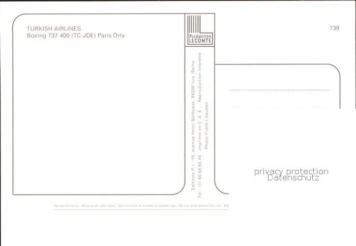 Flugzeuge Zivil Turkish Airlines Boeing 737-400 TC-JDE postalisch nicht gelaufen Erhaltung siehe scans
