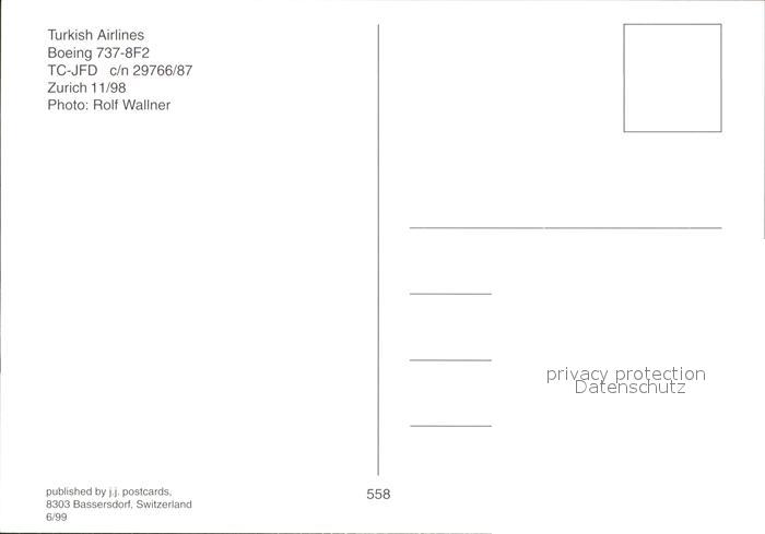 Flugzeuge Zivil Turkish Airlines Boeing 737-8F2 TC-JFD c/n 29766/87 postalisch nicht gelaufen Erhaltung siehe scans