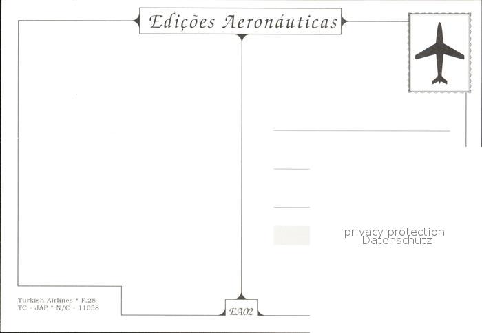 Flugzeuge Zivil Turkish Airlines F-28 TC-JAP N/C-11058 postalisch nicht gelaufen Erhaltung siehe scans