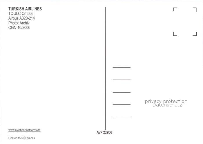 Flugzeuge Zivil Turkish Airlines TC-JLC Airbus 320-214 Cn 566 postalisch nicht gelaufen Erhaltung siehe scans