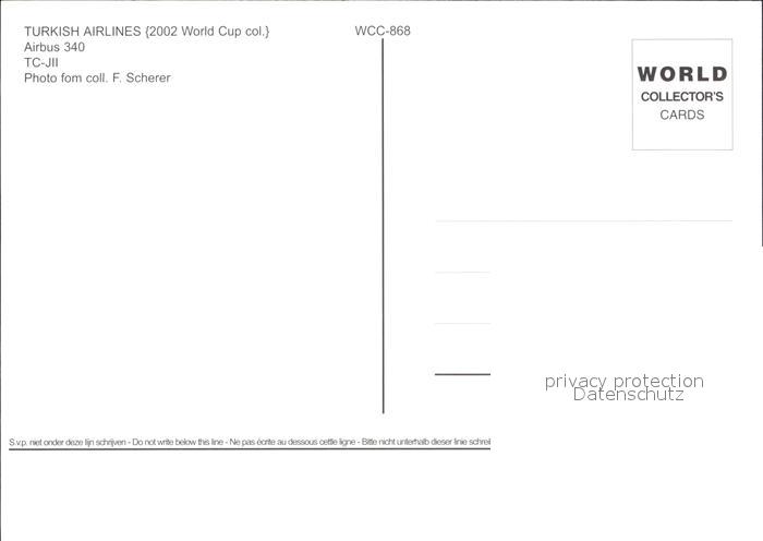 Flugzeuge Zivil Turkish Airlines World Cup Airbus 340 TC-JII postalisch nicht gelaufen Erhaltung siehe scans