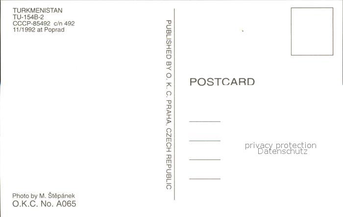 Flugzeuge Zivil Turkmenistan TU-154B-2 CCCP-85492 c/n 492 postalisch nicht gelaufen Erhaltung siehe scans