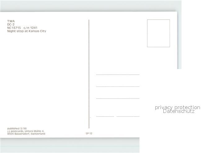 Flugzeuge Zivil TWA DC-2 NC13715 c/n 1241 postalisch nicht gelaufen Erhaltung siehe scans