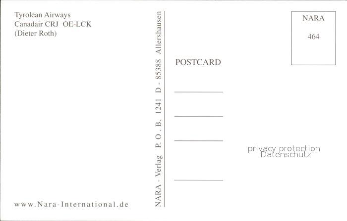 Flugzeuge Zivil Tyrolean Airways Canadair CRJ OE-LCK postalisch nicht gelaufen Erhaltung siehe scans