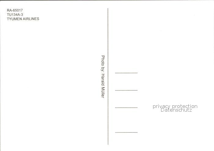 Flugzeuge Zivil Tyumen Airlines RA-65017 TU134A-3 postalisch nicht gelaufen Erhaltung siehe scans