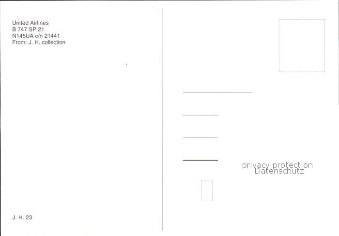 Flugzeuge Zivil Uinted Airlines B-747-SP-21 N145UA c/n 21441 postalisch nicht gelaufen Erhaltung siehe scans