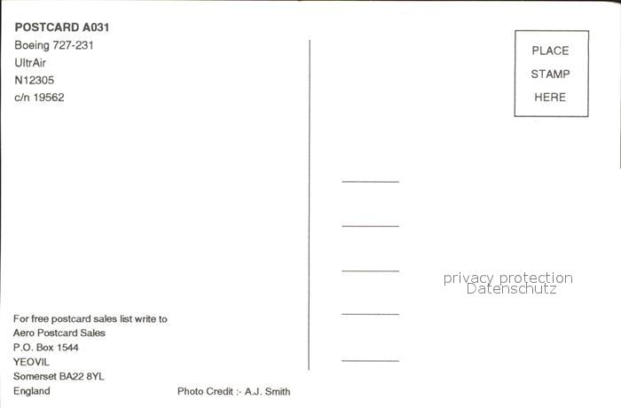 Flugzeuge Zivil Ultrair Boeing 727-231 N12305 c/n 19562 postalisch nicht gelaufen Erhaltung siehe scans