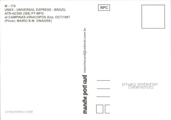 Flugzeuge Zivil Unex ATR-42/300 PT-MFG postalisch nicht gelaufen Erhaltung siehe scans