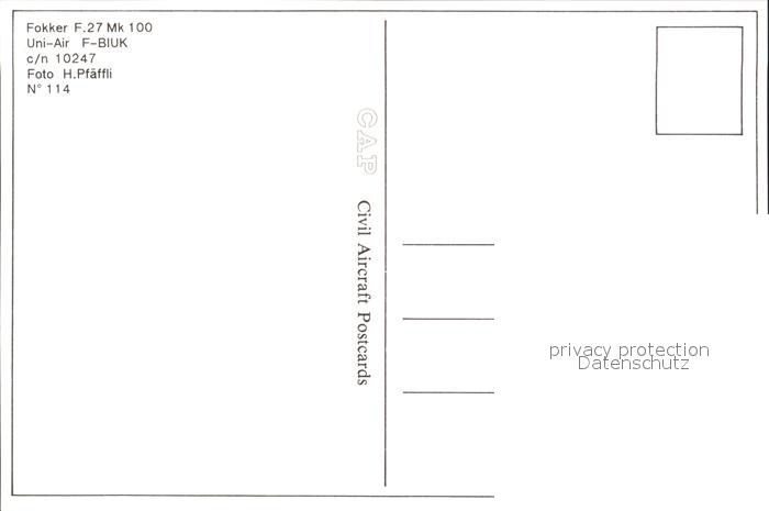 Flugzeuge Zivil Uni-Air Fokker F.27 Mk 100 F-BIUK c/n 10247 postalisch nicht gelaufen Erhaltung siehe scans