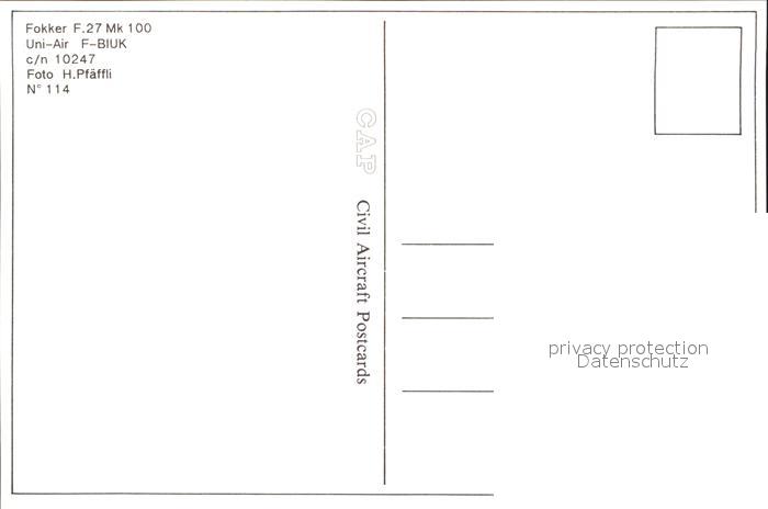 Flugzeuge Zivil Uni-Air Fokker F.27 Mk 100 F-BIUK c/n 10247 postalisch nicht gelaufen Erhaltung siehe scans