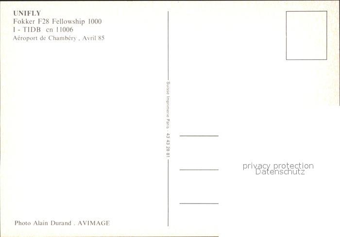 Flugzeuge Zivil Uniflly Fokker F-28 Fellowship 1000 I-TIDB cn 11006 postalisch nicht gelaufen Erhaltung siehe scans