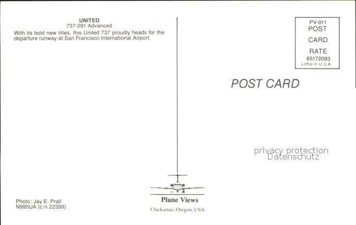 Flugzeuge Zivil UNITED 737-291 Advanced N995UA c/n 22399 postalisch nicht gelaufen Erhaltung siehe scans