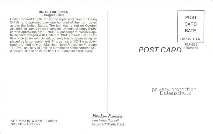 Flugzeuge Zivil United Air Lines Mainliner 130 Douglas DC-3 N25680 c/n 2177 postalisch nicht gelaufen Erhaltung siehe scans