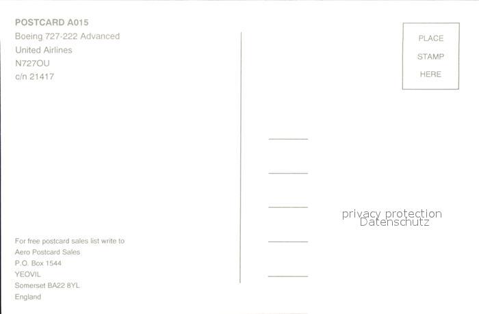 Flugzeuge Zivil United Airlines Boeing 727-222 Advanced N727OU c/n 21417 postalisch nicht gelaufen Erhaltung siehe scans