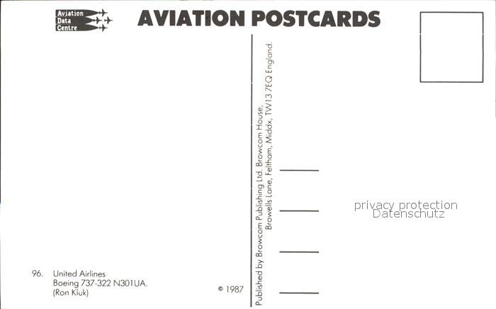 flugzeuge zivil United Airlines Boeing 737-322 N301 UA. postalisch nicht gelaufen Erhaltung siehe scans