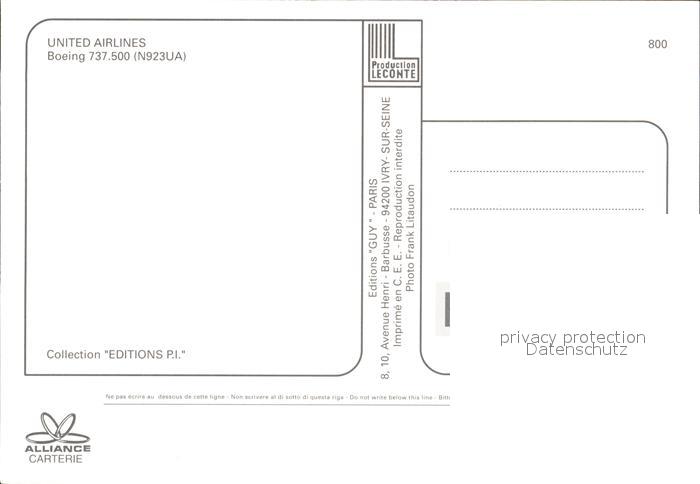 Flugzeuge Zivil United Airlines Boeing 737-500 N923UA postalisch nicht gelaufen Erhaltung siehe scans