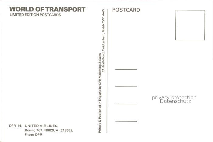 Flugzeuge Zivil United Airlines Boeing 767. N602UA 21862 postalisch nicht gelaufen Erhaltung siehe scans