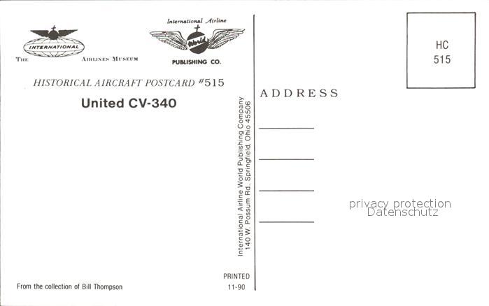 Flugzeuge Zivil United CV-340 postalisch nicht gelaufen Erhaltung siehe scans