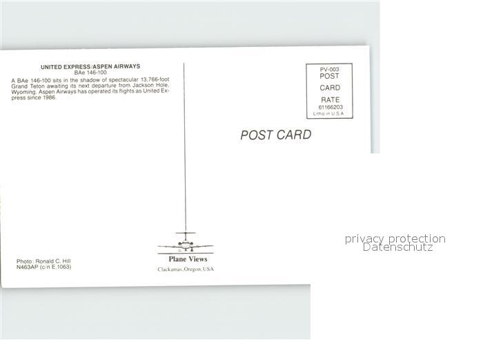 Flugzeuge Zivil United Express Aspen Airways BAe 146-100 postalisch nicht gelaufen Erhaltung siehe scans