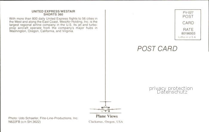 Flugzeuge Zivil United Express Westair Shorts 360 N622FB c/n SH3622 postalisch nicht gelaufen Erhaltung siehe scans