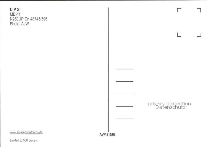 Flugzeuge Zivil UPS MD-11 N250UP Cn 48745/596 postalisch nicht gelaufen Erhaltung siehe scans