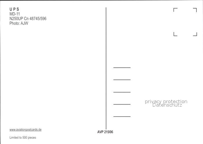 Flugzeuge Zivil UPS MD-11 N250UP Cn 48745/596 postalisch nicht gelaufen Erhaltung siehe scans