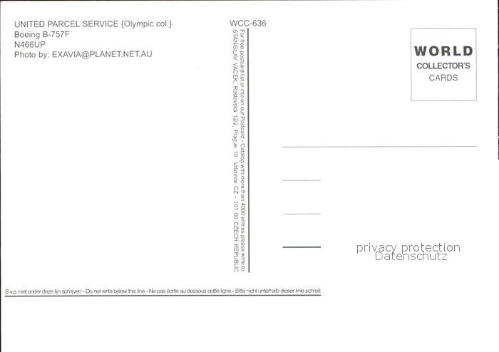 Flugzeuge Zivil UPS United Parcel Service Olympic colours Boeing 757F N466UP postalisch nicht gelaufen Erhaltung siehe scans