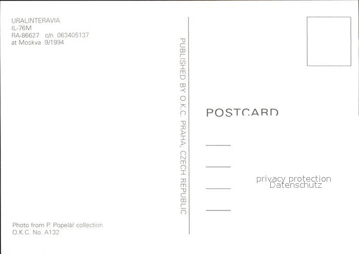 Flugzeuge Zivil Uralinteravia IL-76M RA-86627 c/n 063405137 postalisch nicht gelaufen Erhaltung siehe scans