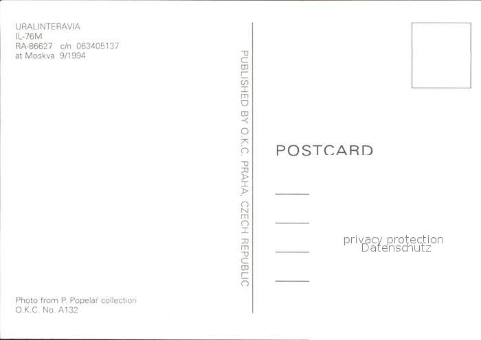 Flugzeuge Zivil Uralinteravia IL-76M RA-86627 c/n 063405137 postalisch nicht gelaufen Erhaltung siehe scans