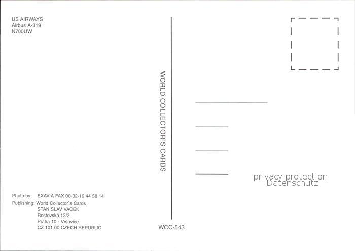 Flugzeuge Zivil US Airways A-319 N700UW postalisch nicht gelaufen