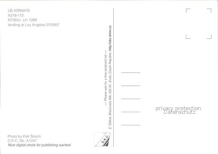 Flugzeuge Zivil US Airways A319-112 N745VJ c/n 1289 postalisch nicht gelaufen Erhaltung siehe scans
