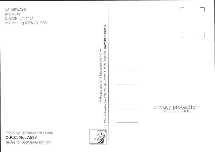 Flugzeuge Zivil US Airways A321-211 D-AVZB c/n 1431 postalisch nicht gelaufen Erhaltung siehe scans
