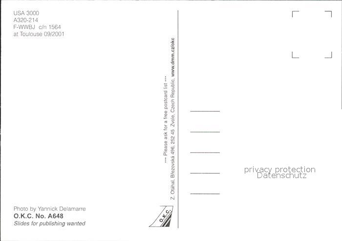 Flugzeuge Zivil USA 3000 A320-214 F-WWBJ c/n 1564 postalisch nicht gelaufen Erhaltung siehe scans
