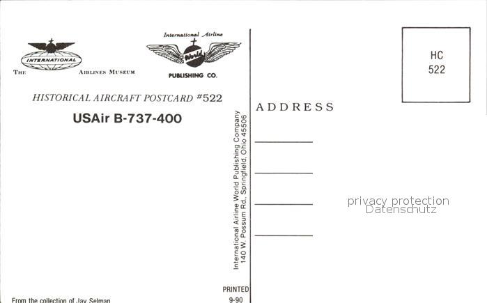 Flugzeuge Zivil USAir B-737-400 postalisch nicht gelaufen Erhaltung siehe scans