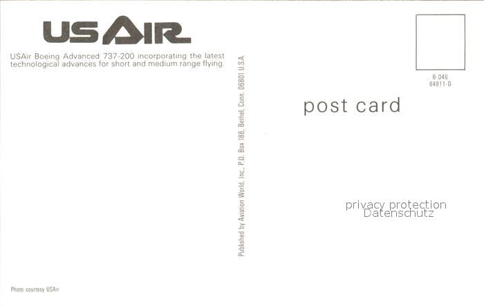 Flugzeuge Zivil USAir Boeing Advanced 737-200 postalisch nicht gelaufen Erhaltung siehe scans