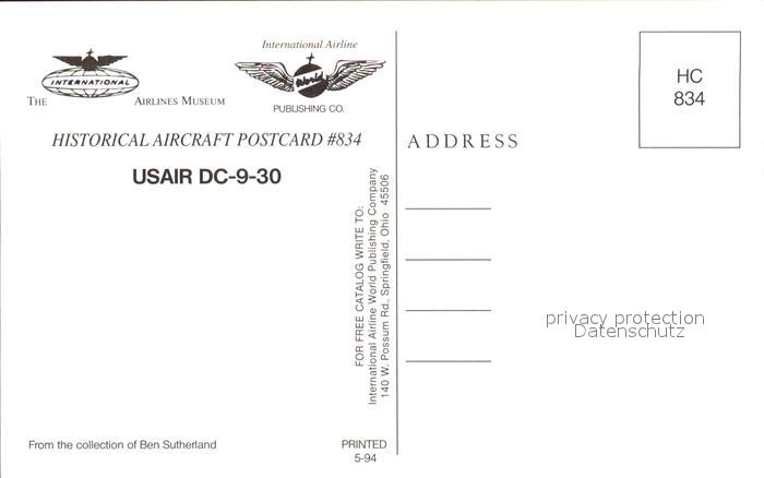 Flugzeuge Zivil USAir DC-9-30 postalisch nicht gelaufen Erhaltung siehe scans