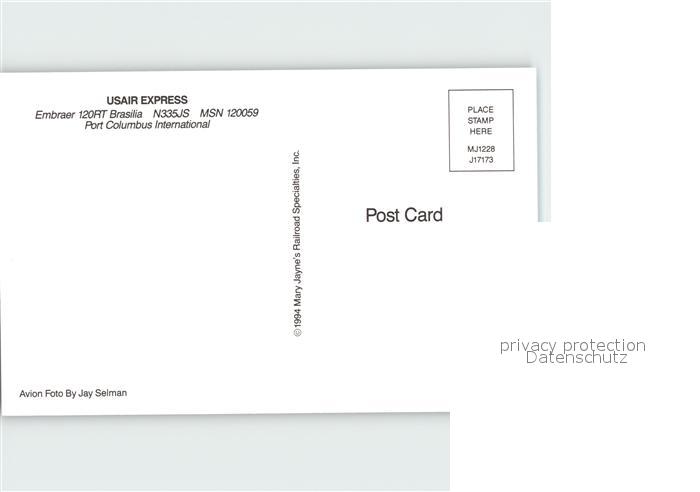 Flugzeuge Zivil USAir Express Embraer 120RT Brasilia N335JS MSN 120059 postalisch nicht gelaufen Erhaltung siehe scans