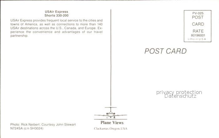 Flugzeuge Zivil USAir Express Shorts 330-200 postalisch nicht gelaufen Erhaltung siehe scans