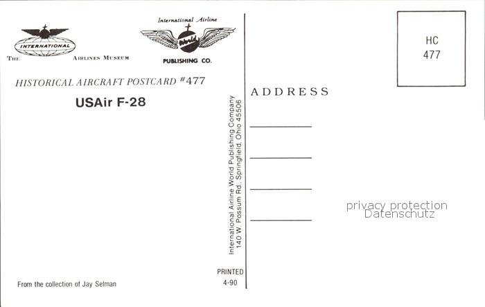 Flugzeuge Zivil USAir F-28 postalisch nicht gelaufen Erhaltung siehe scans