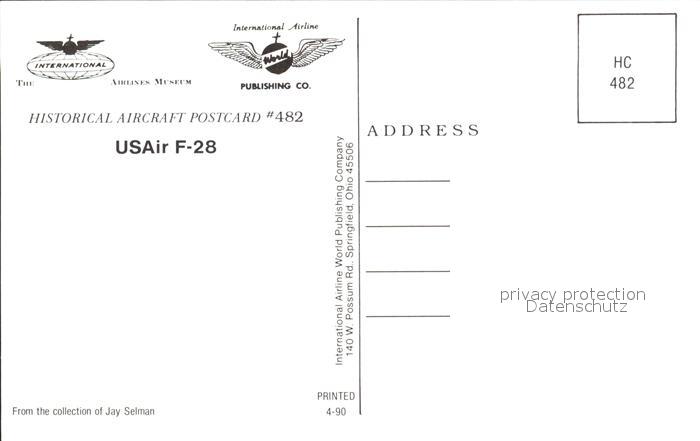 Flugzeuge Zivil USAir F-28 postalisch nicht gelaufen Erhaltung siehe scans