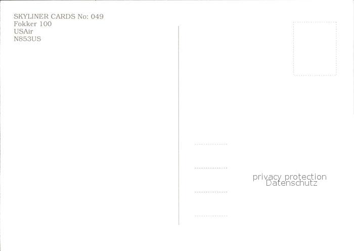 Flugzeuge Zivil USAir Fokker 100 N853US postalisch nicht gelaufen Erhaltung siehe scans